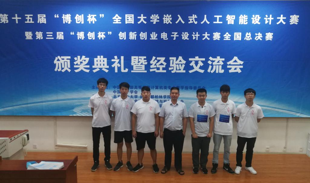 近日,由中国教育部高等学校计算机类专业教学指导委员会、中国电子学会、北京工业大学、北京-都柏林国际学院、中国电子学会嵌入式系统与机器人分会、北京博创智联科技有限公司联合举办的第十五届“博创杯”全国大学生嵌入式人工智能设计大赛暨第三届“博创杯”创新创业电子设计大赛全国总决赛在北京工业大学举行。学院电子工程系师生代表一行8人参加在北京工业大学举行的决赛开幕式及作品展示答辩会。参赛队员在决赛现场沉着冷静,思路清晰,以绝对的优势展示了作品的创新设计主题和创意理念,最终一举荣获全国一等奖1项,二等奖1项。