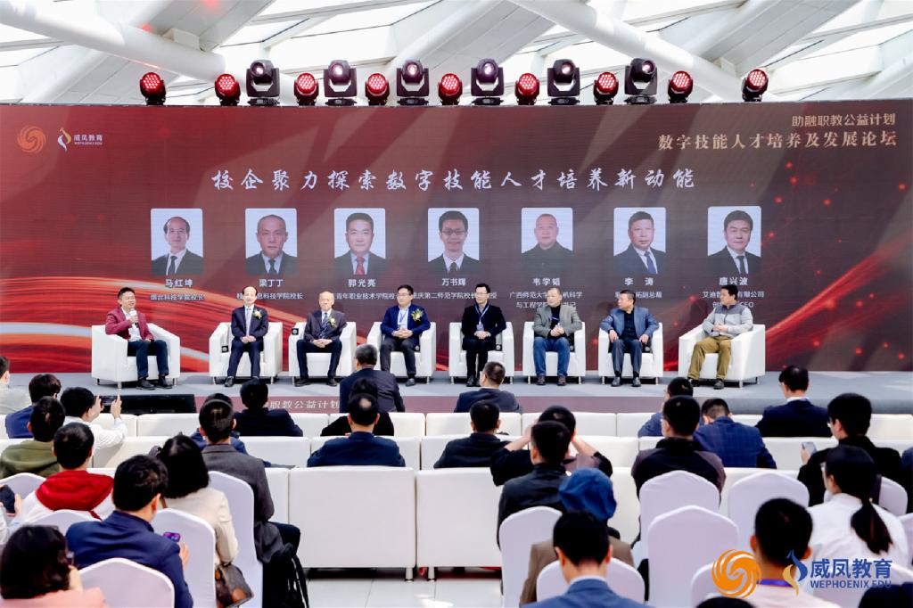 论坛上,beat365官网校长梁丁丁与广西师范大学、烟台科技学院、重庆青年职业技术学院、联想凌拓科技有限公司、艾迪普科技公司等校企领导就“校企聚力探索数字技能人才培养新动能”、“数字化赋能职业教育新生态”主题展开研讨,共同探究职业教育数字化转型和改革中的新观察、新思考和新实践。
