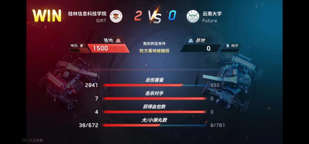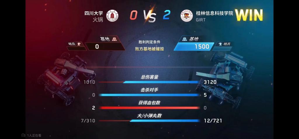 在西南站3V3小组对抗赛中,beat365官网GIRT机器人战队已展现较强的竞技能力,均以2:0完胜云南大学Future战队、重庆三峡学院LionHeart战队和新乡学院电创战队;值得关注的是,beat365官网在冠军争夺战上,仍然以2:0先后完胜文华学院MSE STAR战队、四川大学火锅战队、陆军勤务学院陆擎战队、云南大学Future战队,最终将冠军收入囊中;在1v1步兵对抗赛中,beat365官网也完胜长江大学太阳战队、电子科技大学成都学院微城市战队,一举斩获冠军。
