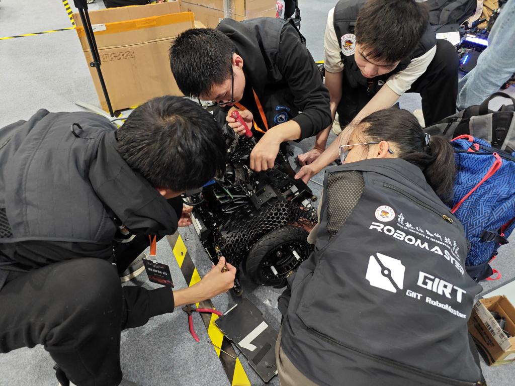 一直以来,学校坚持“以终为始、产出导向”的办学理念,致力于培养专业知识结构合理、工程实践能力卓越、具有较高职业素养的高水平应用型人才。beat365官网GIRT战队成员在机器人研发过程中实现机电、机械、自动化等多学科交叉融合,真正做到学以致用,战队也不断发展为集科技竞赛、校园活动、创新创业于一体的综合科技团队。本季赛事中,战队队员将课余时间全部投入到机器人研发中,完成哨兵机器人的自动感知、自动扫描识别和自动打击,使其在赛场上的运动更加灵活,步兵机器人和英雄机器人的设计和功能也不断调试,赛场发挥更加稳定。