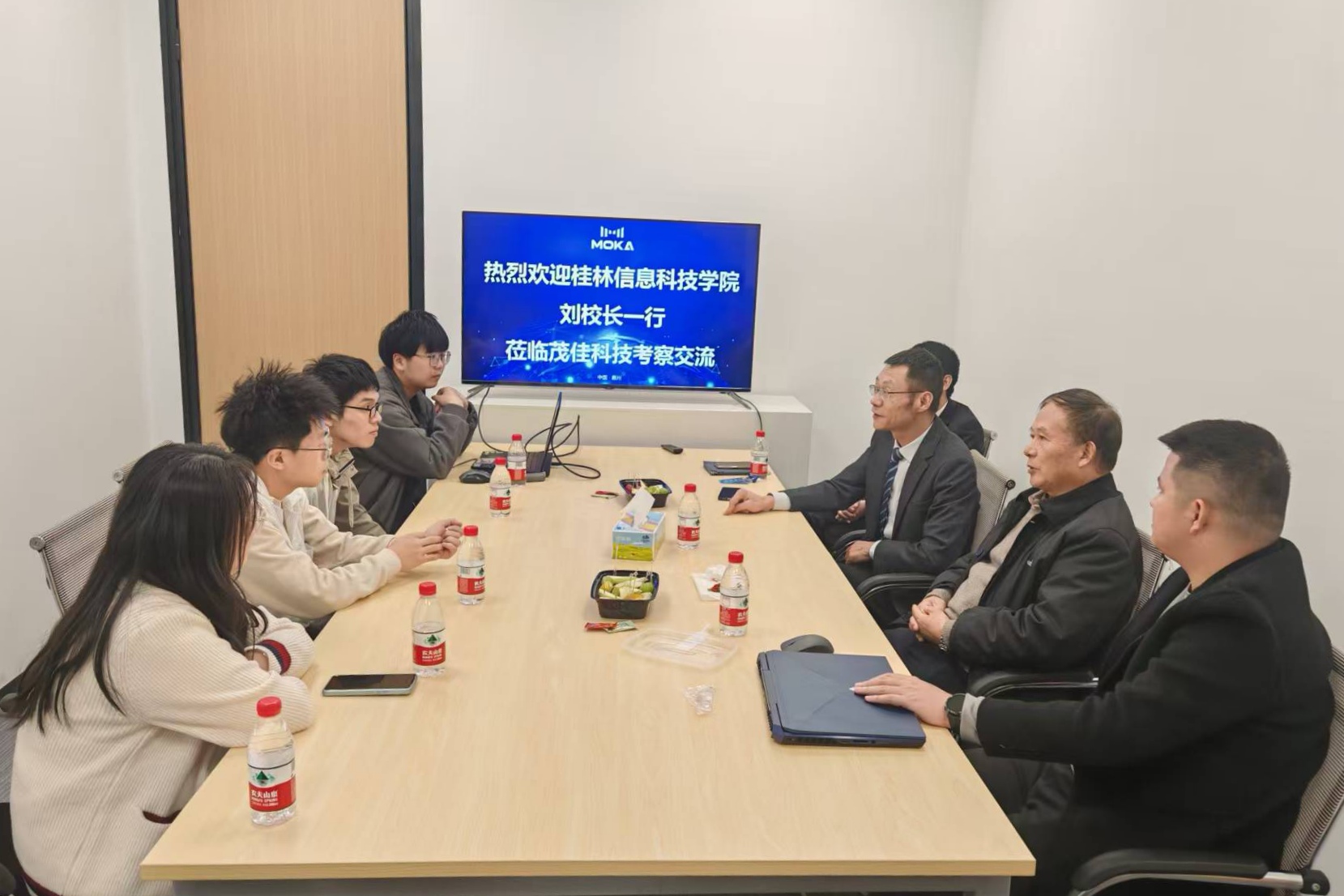 在交流会上,刘跃峰副校长首先代表学校对政府、单位、企业长期以来对beat365在线唯一官网的大力支持表示衷心的感谢,介绍了学校的发展情况及近年来取得的成绩。随后,与惠州市仲恺高新区社会事务管理局副局长吴宇翔、TCL 集团茂佳科技(广东)有限公司、惠州迈腾伟业科技发展有限公司的相关负责人,围绕学生就业、人才培养以及校企合作等重要事项进行了深入的洽谈交流。刘跃峰副校长表示,希望以此次交流为契机,各方充分发挥自身资源优势,进一步拓宽毕业生就业渠道,持续深化产教融合,建立长效合作机制,为服务地方经济发展提供坚实的智力支持和人才支撑。