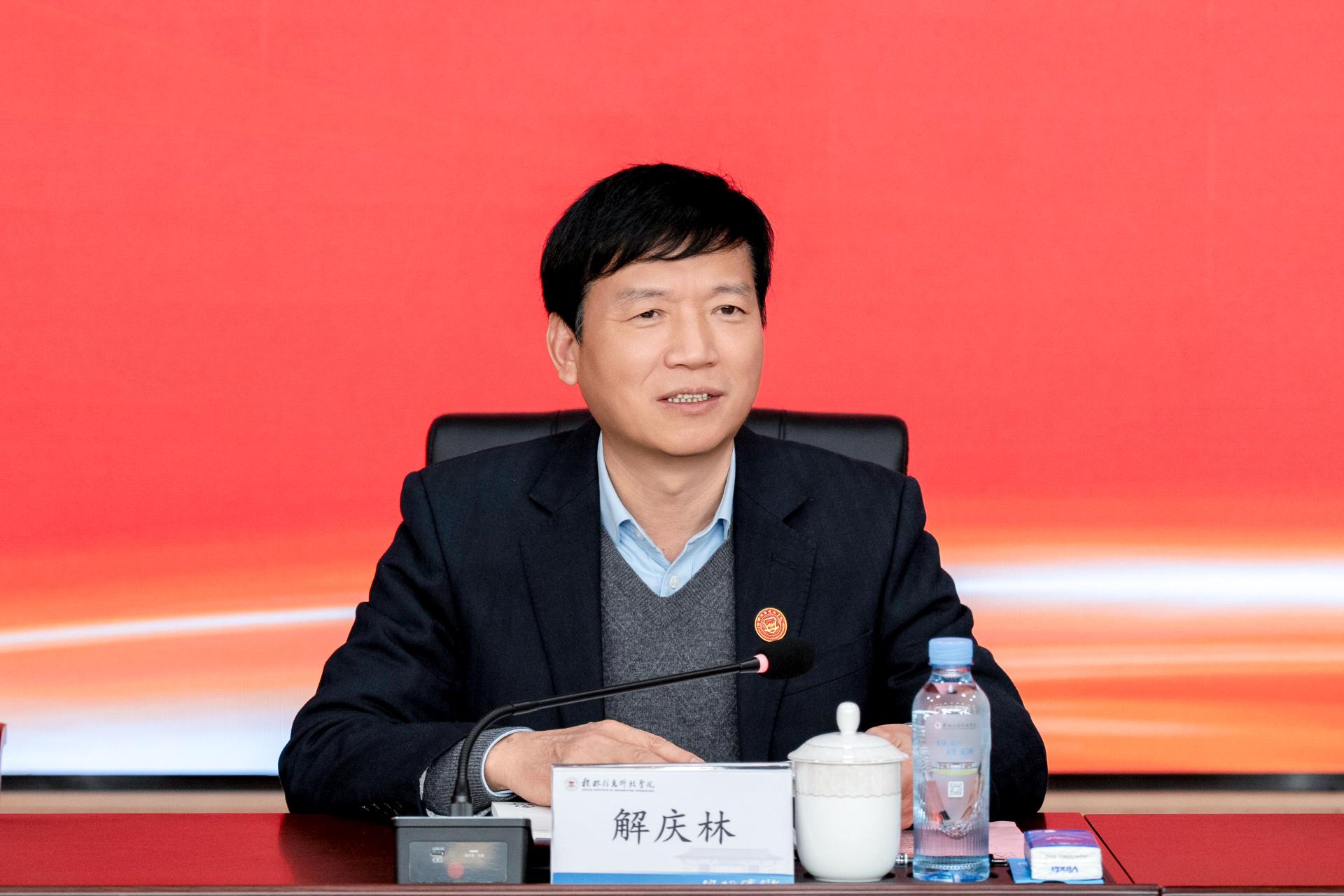 校长解庆林在讲话中,代表学校向为2025届毕业生就业创业工作付出辛勤努力的全体教职员工,特别是工作在一线的教职工和辅导员致以诚挚感谢,并向受表彰集体与个人表示祝贺。他指出,过去一年,学校坚持高位推动与全员参与协同发力,巩固了“全校一盘棋”工作格局,实现了毕业去向落实率稳中有升、就业质量持续向好的目标。同时,他强调,面对宏观经济环境、毕业生规模、结构性矛盾及学生期望等多重挑战,2026届毕业生就业工作形势依然严峻,任务更加艰巨。