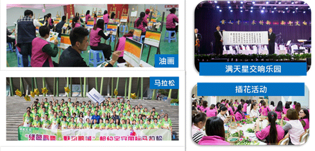 公司内部图书室、篮球场、羽毛球场、乒乓球室、 健身房、电影放映室等文体娱乐设施;每月组织主题月活动,如瑜伽、舞蹈、球类比赛、嘉年华、联谊等活动。每年组织员工相亲相爱活动 |