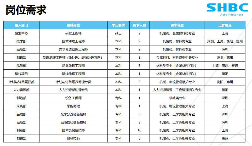 深圳航空标准件有限公司3月22日上午10点在A203举办专场宣讲: