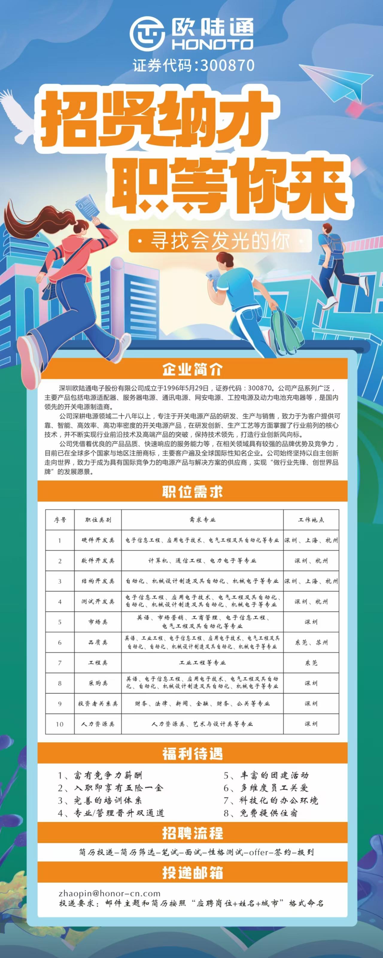 深圳欧陆通电子有限公司10月19日9:00来校招聘(地点:A203)