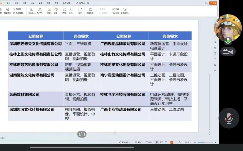 在班会上,兰珂老师给班级里的同学介绍了与学院历届合作的相关企业,并就不同岗位的需求进行了详细解读,指导同学们结合自身专业所长找到对应的实习岗位。接着,班主任展示了简历和作品集的优秀范例,图文结合的方式,直观的让同学们了解到专业特点以及未来所要触及的项目内容,为增强同学们的积极性,老师主动了解到同学们的困惑,老师对所存在的问题进行回答,细致的为同学们解决困惑和疑问,对同学们在未来的求职过程中提供了帮助。
