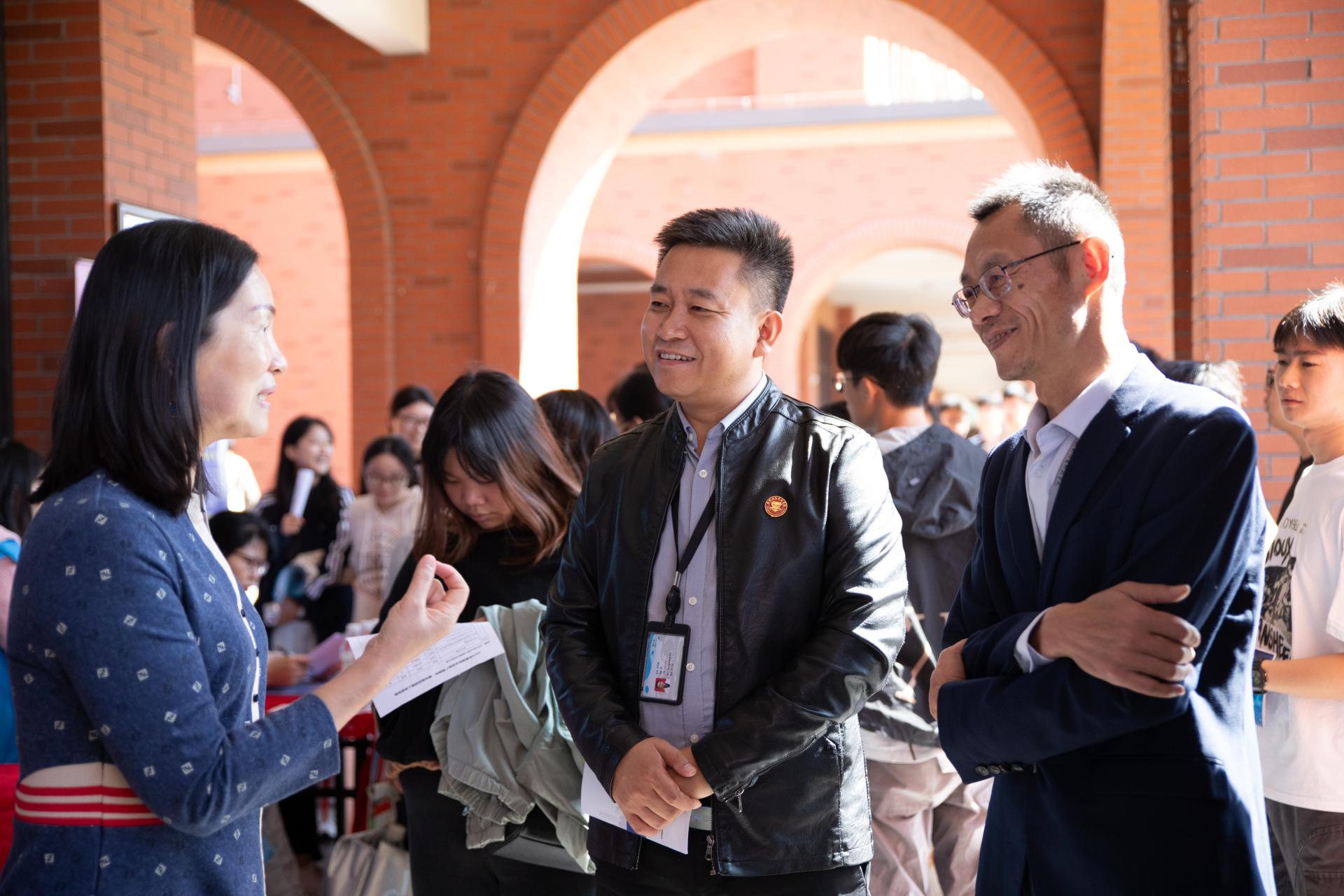 学校领导与用人单位亲切交谈