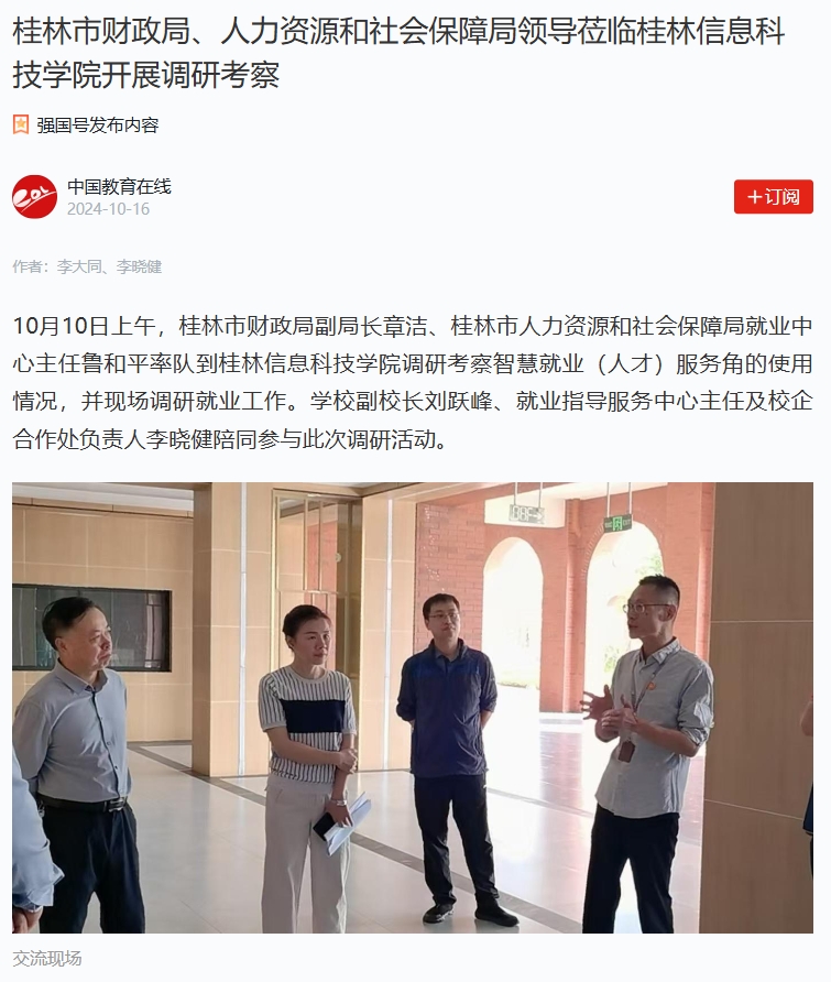 中国教育在线链接:桂林市财政局、人力资源和社会保障局领导莅临beat365在线唯一官网开展调研考察 (xuexi.cn)
