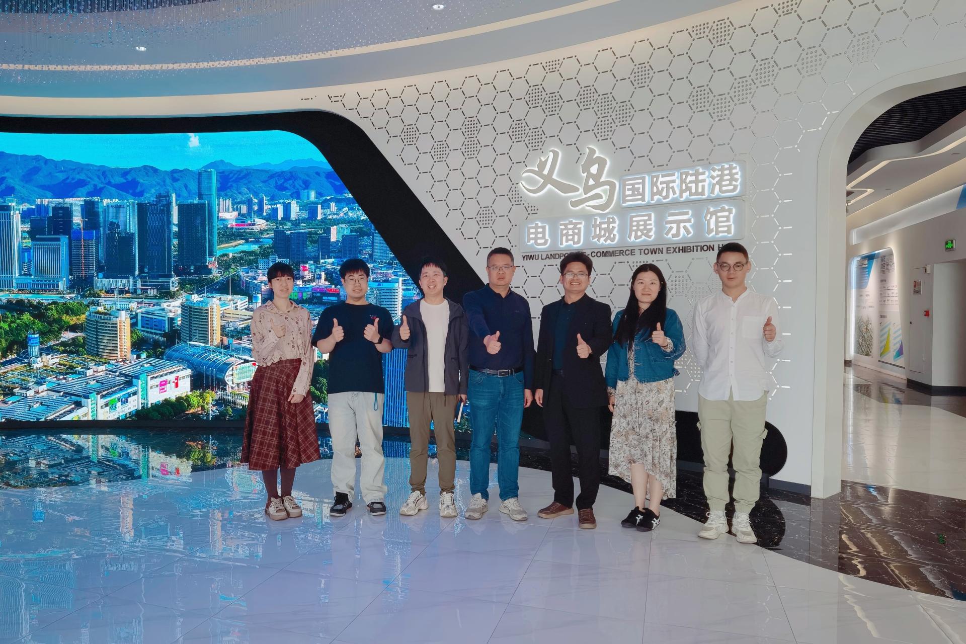 接着,调研组拜访了金华浙江菁英电子商务产业园。该园区是浙江省商务厅认定的首批电子商务示范基地,入驻企业100余家,涵盖跨境电商、直播电商、供应链服务等领域。金华市网商协会会长兼浙江菁英电商产业园常务副总经理邓宸平、浙江菁英电商产业园综合部经理谢淑芳带领调研组走访了园区内企业。常务副总经理邓宸平先生在座谈中表示,园区年均人才需求不断加大,兼具数据分析能力与国际贸易实务经验的复合型人才尤为紧缺。随后,调研组赴义乌市国际陆港电商城考察。义乌市陆港电子商务园区有限公司副总经理季伟等领导接待了调研组并亲自介绍园区的总体情况。义乌市国际陆港电商城由义乌市属国企义乌市国际陆港集团有限公司下属企业义乌市陆港电子商务园区有限公司投资建设,占地3.3平方公里,按照“特色明显、产业链完整、服务功能健全”的总体思路进行规划,整合电商全产业链,聚集互联网+骨干企业,全力打造“新产业、新模式、新技术、新机制、新领军人物”经济示范区。目前,电商城已入驻企业超1000家。调研组通过与浙江菁英电子商务产业园和义乌市国际陆港电商城的交流,双方达成合作意向。作为政府牵头的企业园区,拟采用“政校企”合作模式,从2022级学生起,以“3+1”校企联合培养等方式,安排相关专业完成实习与就业工作。
