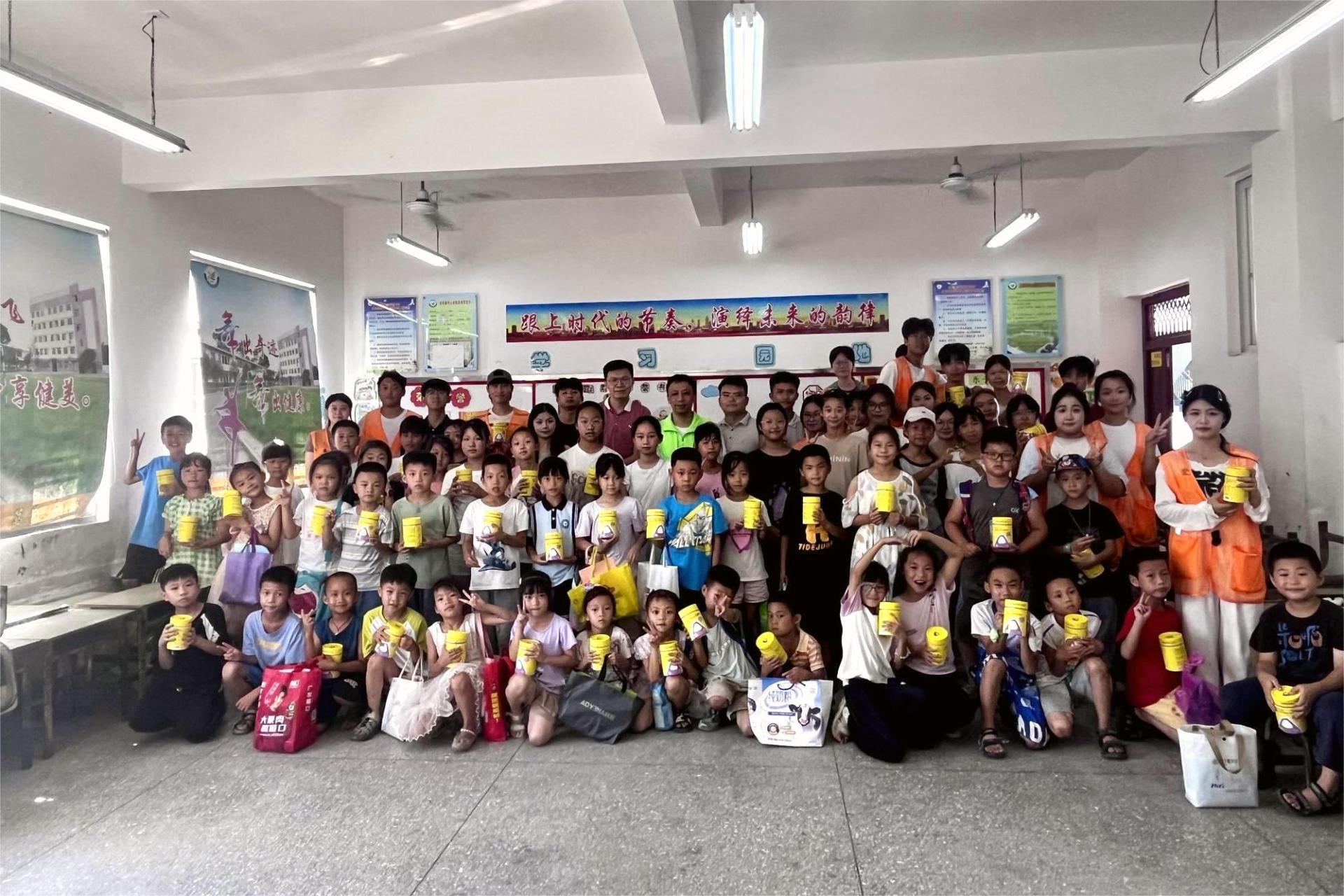 为践行高校社会责任,培养青年学子公益精神,7月15日,商学院“启明星”社会实践团队联合桂林市好善社工服务中心、灵川县大学生联合会,在灵川县灵田镇中心校开展“爱心糖果”公益捐赠活动。桂林市好善社工服务中心秘书长吴永灏,灵川县大学生联合会团工委书记、监事长韦屹威,学院团委书记袁喆以及社会实践团队成员参加活动。