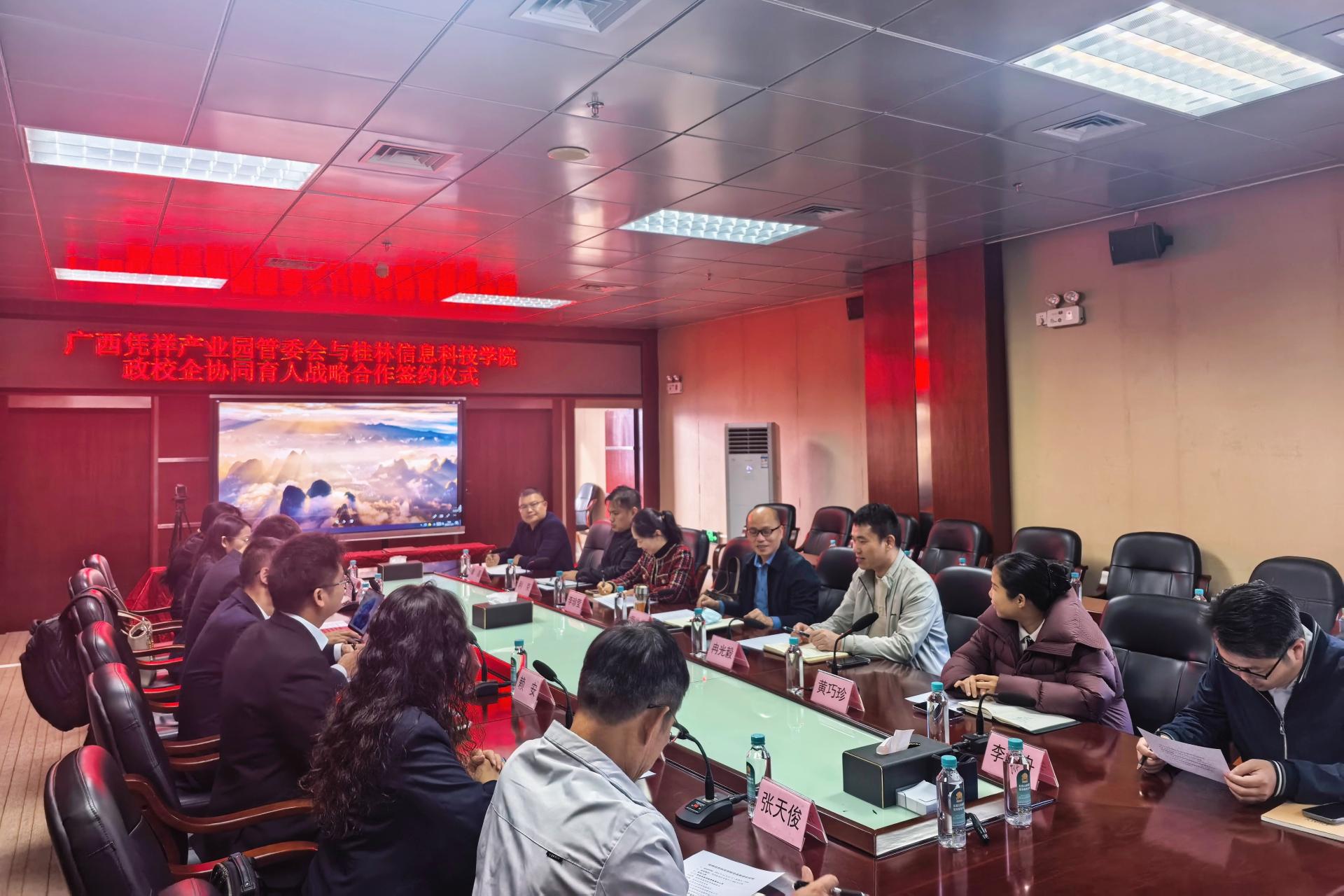 广西凭祥产业园区管委会保税自贸事务局副局长黄生弟与刘跃峰副校长进行政校企协同育人战略合作签约