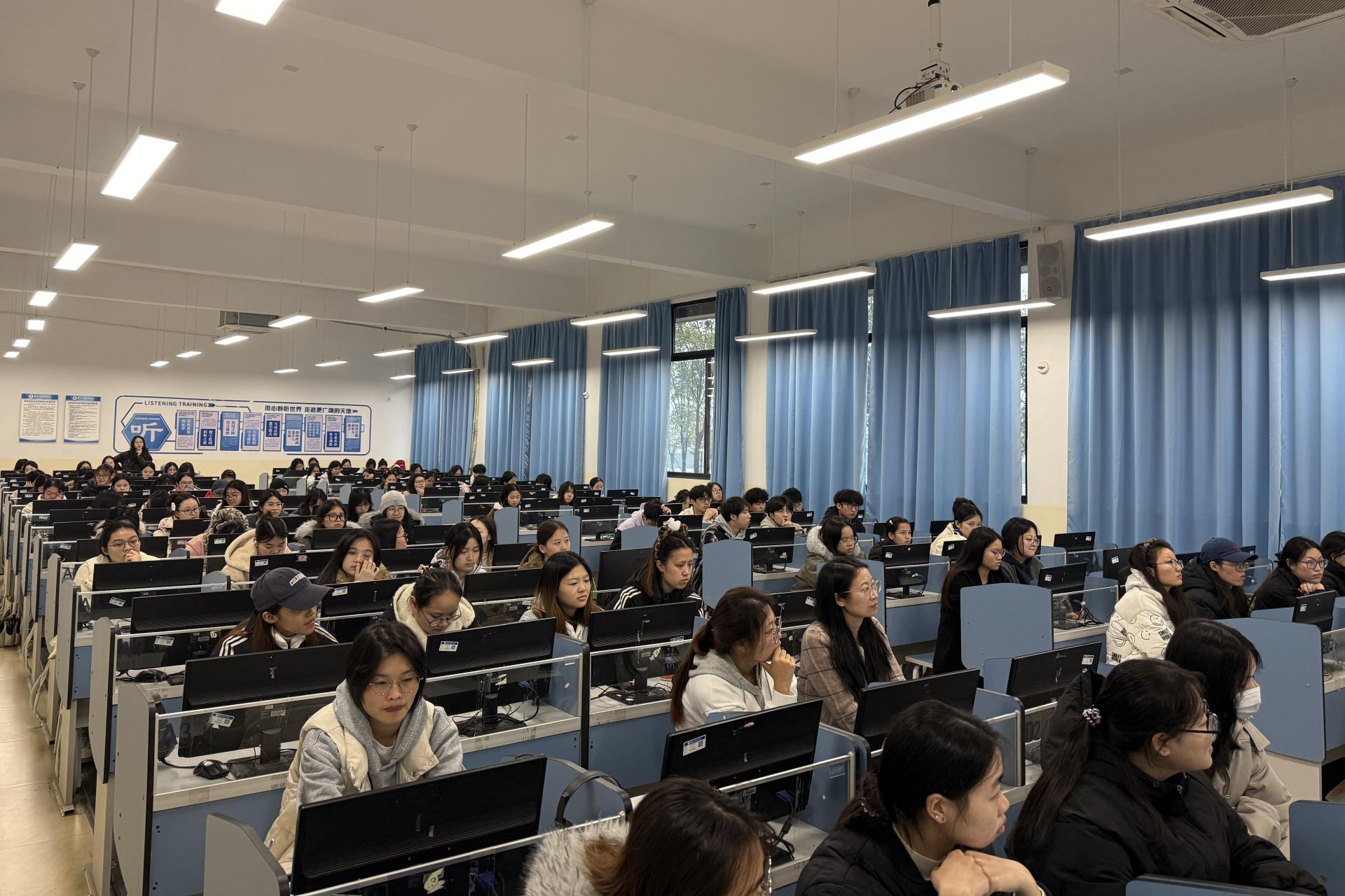 2025年12月23日,外贸与外语学院在F103教室召开2023级英语专业学生实习说明会。会议由英语专业教研室副主任谢彩华老师主持,学院副院长赖安老师、英语专业教研室主任王雪利老师、2023级辅导员罗吉凤老师及相关实习项目负责老师出席,2023级英语专业全体学生参加。