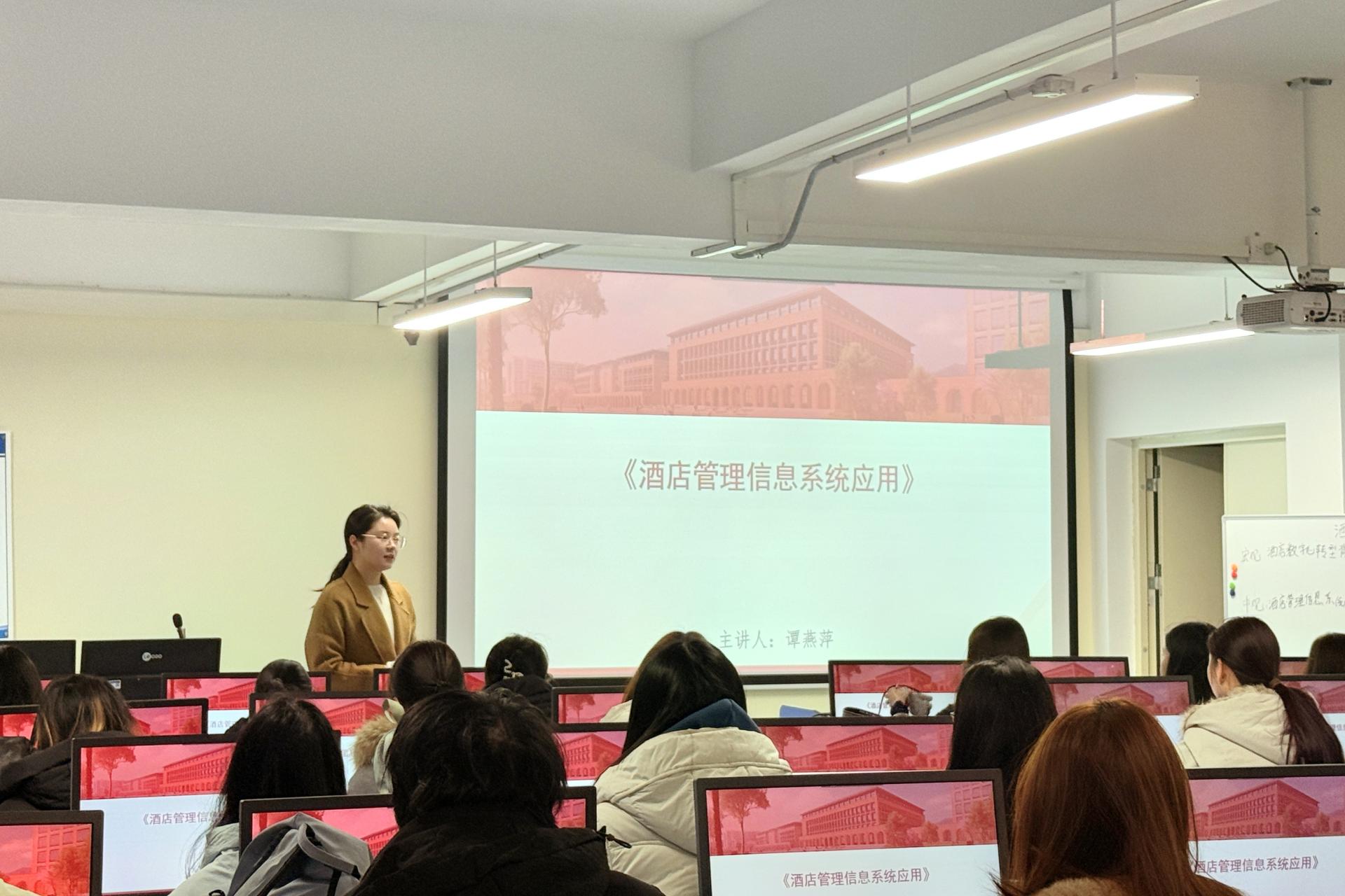 3月2日,新学期开学首日,外贸与外语学院国际文旅产业学院的《酒店管理信息系统应用》课程在L401实验室顺利开讲,这是该产业学院面向2023级学生开设的特色课程之一。课堂上,授课教师教学准备充分,案例讲解清晰;学生听讲专注,互动积极,展现出良好的精神风貌。学校教学巡查组与学院领导一同深入课堂聆听,并在课后进行交流,校领导对产业学院课程的组织实施给予了肯定。