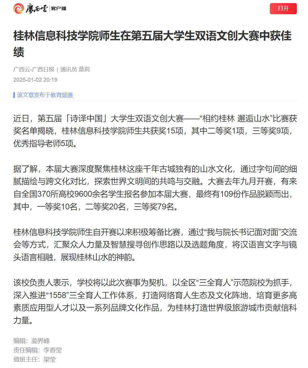 广西云-广西日报链接:beat365在线唯一官网师生在第五届大学生双语文创大赛中获佳绩