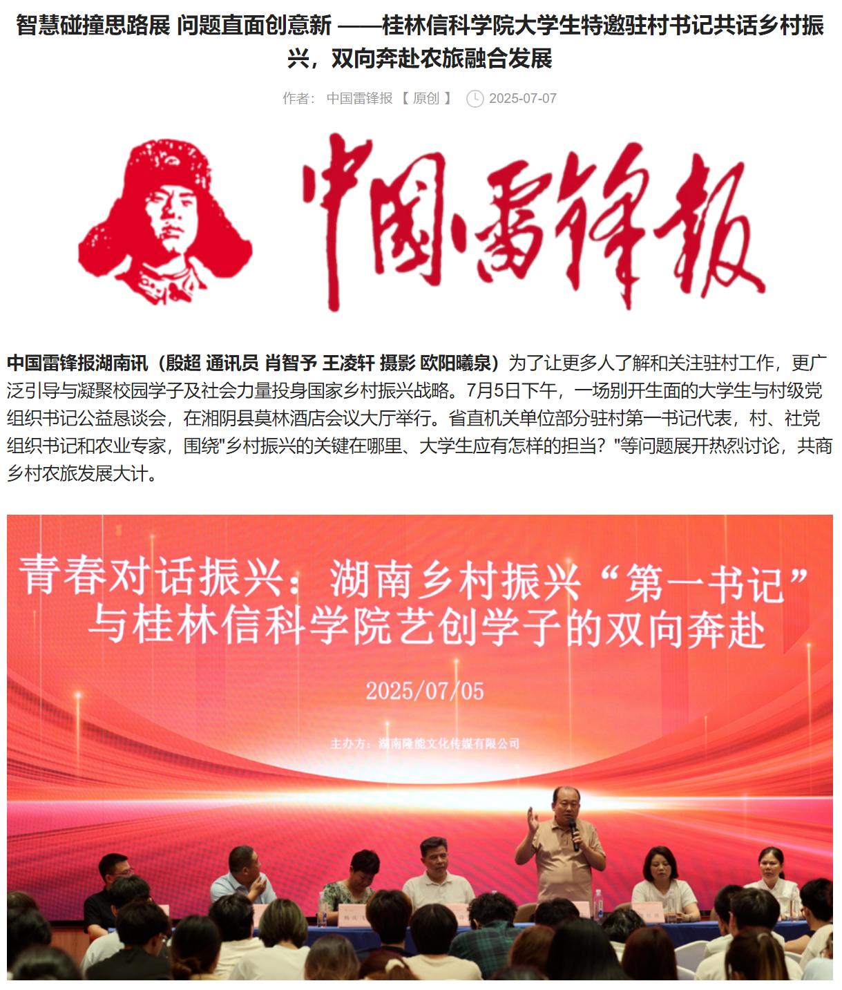 中国雷锋报链接:智慧碰撞思路展 问题直面创意新 ——桂林信科学院大学生特邀驻村书记共话乡村振兴,双向奔赴农旅融合发展