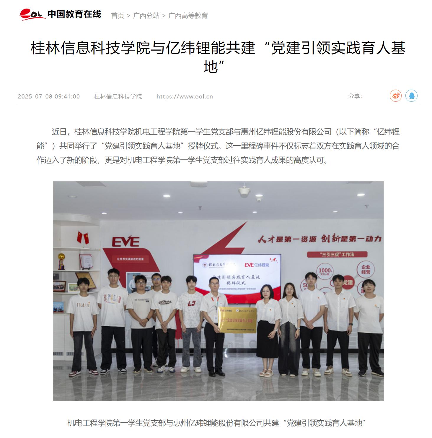 中国教育在线链接:beat365在线唯一官网与亿纬锂能共建“党建引领实践育人基地”