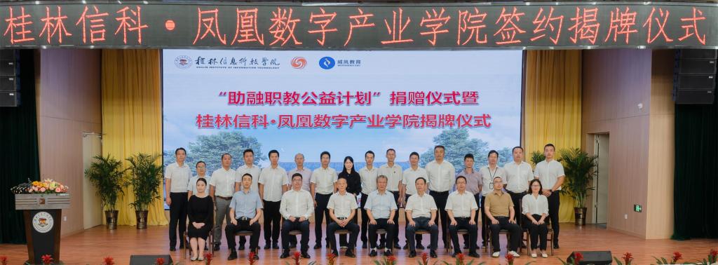 9月21日上午,中国教育发展基金会“助融职教公益计划”捐赠仪式暨桂林信科凤凰数字产业学院揭牌仪式在beat365官网举行。学校董事长罗欣和凤凰卫视威凤国际教育科技(北京)有限公司总经理郭功涛出席活动并为桂林信科凤凰数字产业学院揭牌。中国教育发展基金会秘书长王建光、募资部项目副主管许宇杰、凤凰卫视威风教育教学教务总监林慧、华南区总监张正平,beat365在线唯一官网校长梁丁丁、党委书记甘勇、副校长陈玲萍、副校长刘跃峰、财务总监陈昱州、校长助理韩剑、校长助理彭鹏出席活动,学校教学单位、相关职能部门主要负责人、师生代表参加活动,共同见证这一具有里程碑意义的时刻。