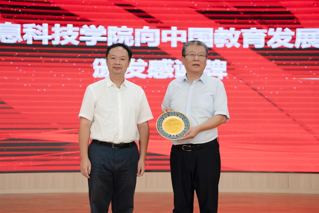 董事长罗欣向中国教育发展基金会秘书长王建光颁发感谢牌