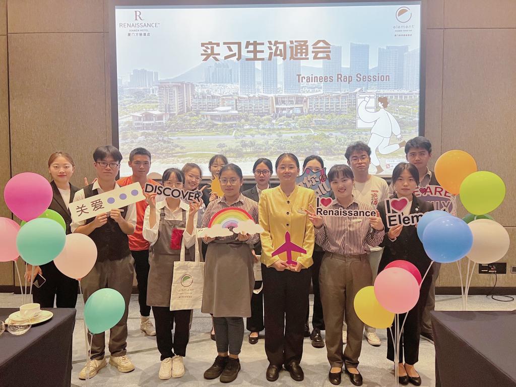 2023年5月到校招聘,非常荣幸获学生青睐老师推荐,7月共计入职学生达18人,多数同学积极性强,对待工作认真负责,同学有问题时,酒店也与老师共同配合解决问题,2023年7月-2024年4月,共计为学校开展专题沟通会三次,共计接待两次老师到酒店慰问学生,并协同解决学生提出的问题,帮助同学更好的在酒店完成实习。