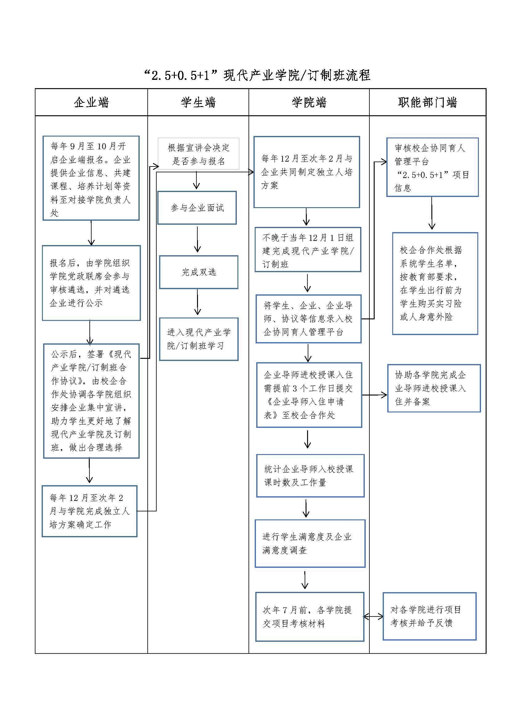“2.5+0.5+1”现代产业学院/订制班流程