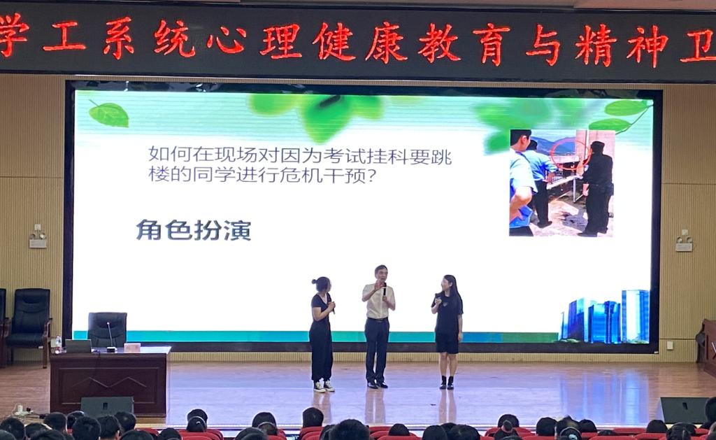 6月29日下午,学校学生工作部心理健康教育与咨询中心举办了主题为“心理危机干预的策略与方法”的学生工作系统心理健康教育与精神卫生知识专题讲座。讲座由桂林市精神卫生中心副院长、桂林医学院精神卫生教研室刘军教授主讲。学校各系辅导员、心理中心专兼职咨询师、公寓管理中心、安全保卫人员、各系心理委员、学生干部等400余人参加了此次培训。学生工作部团委副书记许奇主持了本次专题讲座。