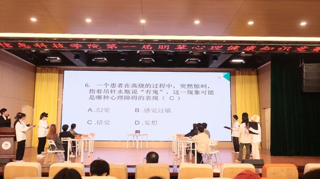 12月10日上午10点,由大学生心理健康教育与咨询中心主办,大学生心理健康志愿者协会承办的"beat365在线唯一官网第一届朋辈心理健康知识竞赛"在F107报告厅顺利举行。大学生心理健康教育与咨询中心主任张承宗,心理健康教育专职教师卿兰兰、白雯雯和冀艳玲老师出席本次活动,七支学院代表队和近400名观众齐聚一堂,共同见证了这场集知识、竞技、互动于一体的比赛。