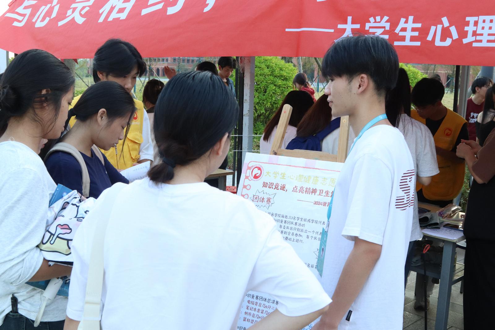 活动采用线上、线下相结合的方式,全方位推广心理知识。线上,同学们通过积极转发、点赞心理中心公众号、QQ发布的相关心理知识,扩大了活动的影响力和传播范围。线下,大学生心理健康志愿者协会成员通过宣传单,向同学们详细介绍精神卫生日的意义和心理健康知识。同时,现场还设置了趣味小活动,同学们踊跃参与,通过完成任务赢取精美奖品,气氛十分活跃。