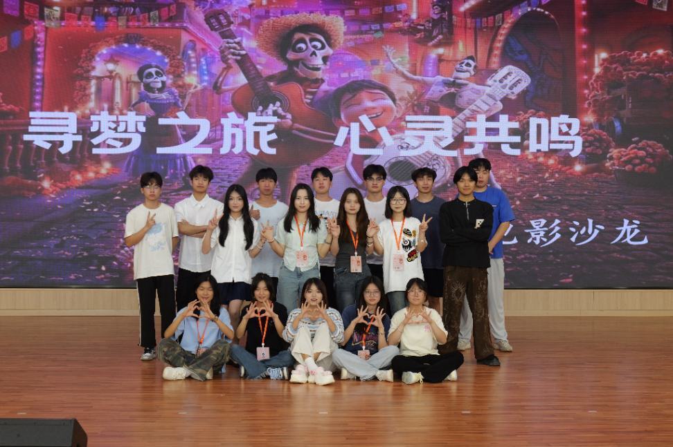 活动当天,F107报告厅座无虚席。同学们沉浸于《寻梦环游记》精彩剧情,随着主人公经历或欢笑、或感动。观影结束后,设置的提问引导思考环节将活动推向高潮。同学们踊跃发言,分享观影感悟。有同学表示从影片中汲取到追逐梦想的力量,决心更加坚定地朝着目标前行;也有同学感慨家庭情感的珍贵,意识到要多花时间陪伴家人。