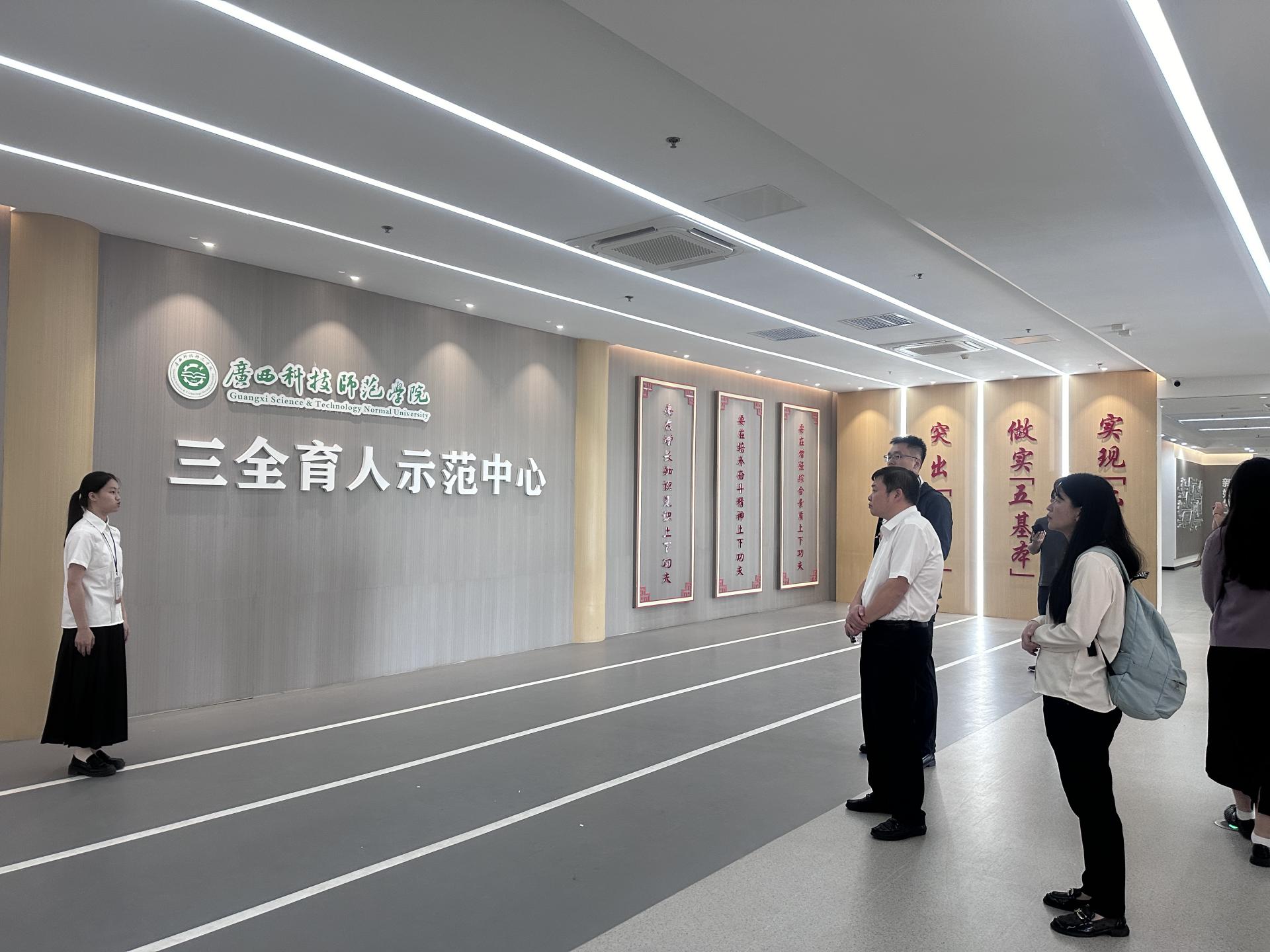 座谈结束后,调研组一行在广西科技师范学院相关负责人的陪同下,实地参观了学校的本科教学合格评估专家入校路线,通过实地参观和对口交流,调研组成员对广西科技师范学院的教学管理、教学质量监控以及学生服务等方面的工作有了更加直观和深入的了解。