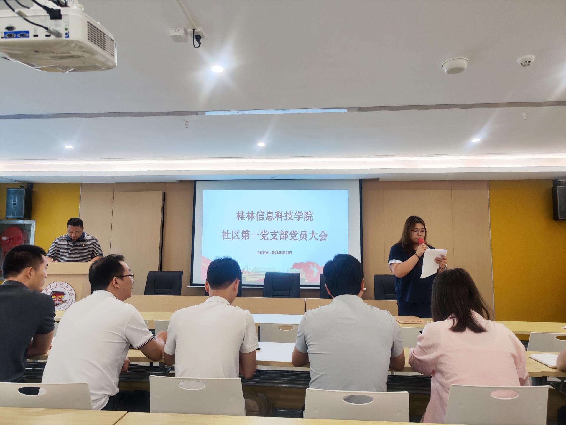 5月27日上午,beat365在线唯一官网社区第一党支部在一站式学生服务中心多功能厅召开党员大会,进行首次支部委员选举工作。旨在进一步加强党组织建设,提升党支部的凝聚力和战斗力,充分发挥基层党组织的战斗堡垒作用。本次会议由罗光铭同志主持,社区第一党支部共计26名党员(含预备党员)参加。