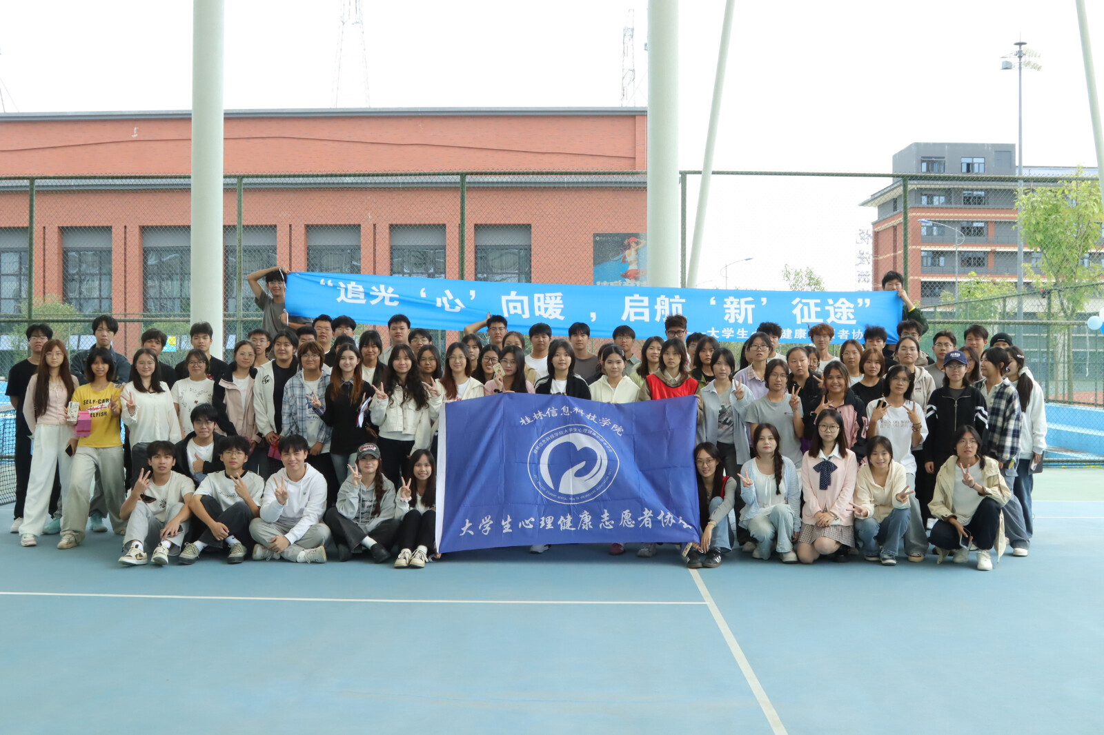 金秋十月,桂香隐约,学校校园内洋溢着秋天独有的清爽与宁静。近日,为深化朋辈心理干部新老成员之间的情感联结,进一步淬炼团队协作精神,大学生心理健康志愿者协会在行健楼旁的露天网球场成功举办了以“追光‘心’向暖,启航‘新’征途”为主题的朋辈干部心理素质拓展活动。