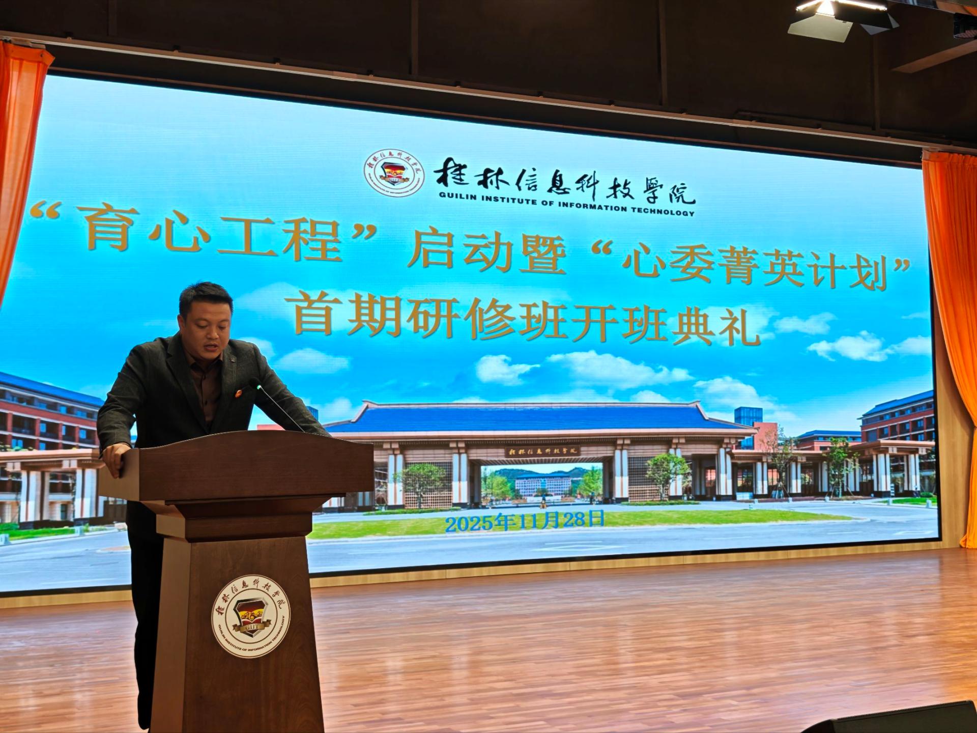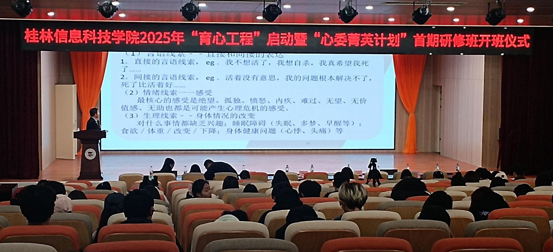 系列培训分为理论讲授与素质拓展两部分。理论环节于11月28日在守正楼G105正式开班,随后由桂林市人民医院心理门诊主任周鑫、大学生心理健康教育与咨询中心主任张承宗分别围绕“大学生常见心理问题识别及危机干预”“与心同行,委以重任”等主题开展专题讲座。