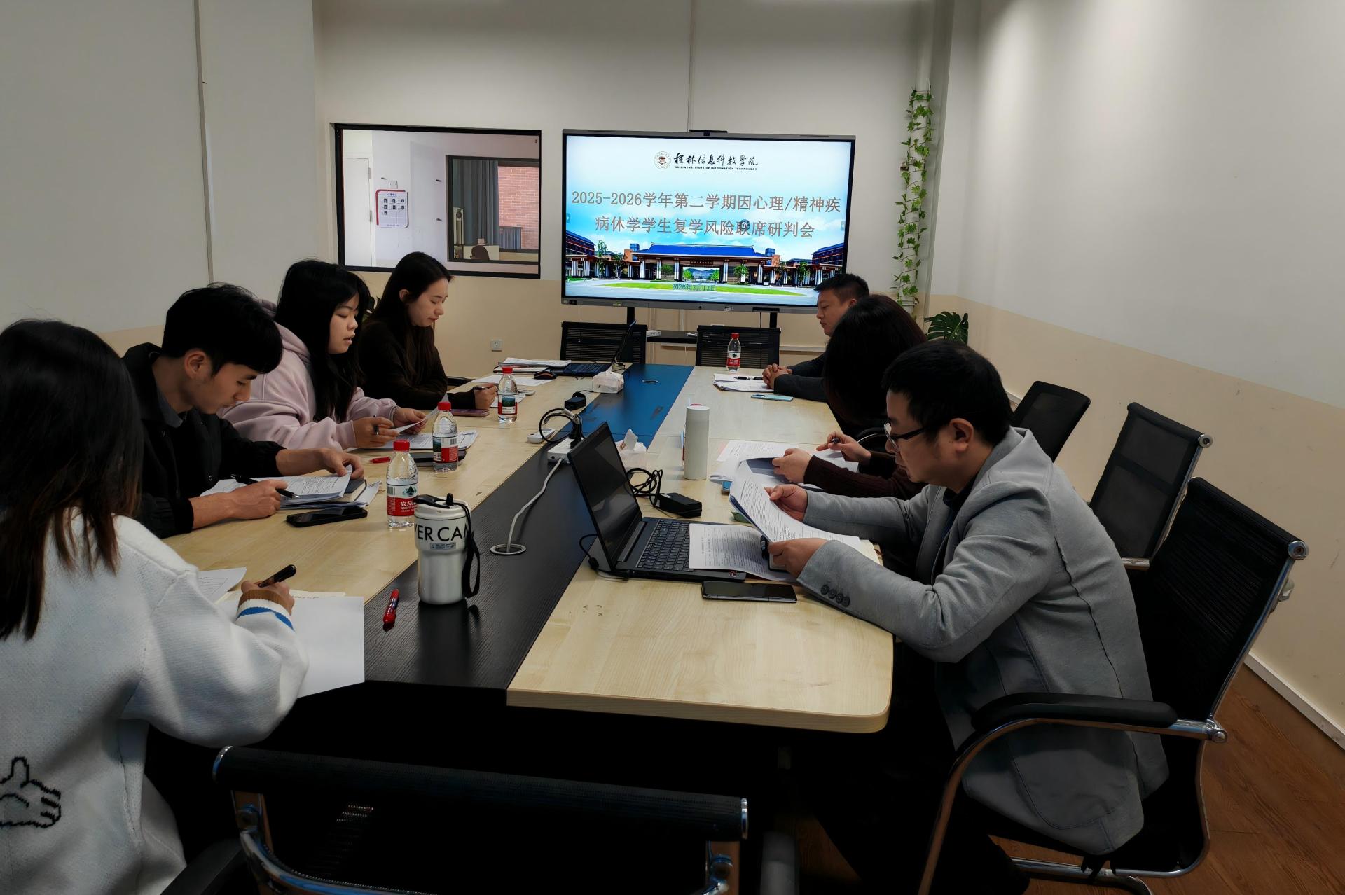 会上,各二级学院按既定顺序依次汇报。心理辅导员与学生辅导员逐一介绍申请复学学生的休学治疗情况、当前身心状态、家庭支持系统、学业适应能力及日常表现等关键信息,为风险研判提供详实、客观的第一手材料。何雪雪副主任医师结合临床专业经验与学生个案资料,从精神卫生专业视角,对每位申请复学学生的康复效果、风险等级、适应潜力进行全面评估,针对性提出定期随访、药物规范管理、心理动态干预、家校协同沟通等专业建议,为学校精准施策、科学管理提供权威依据。