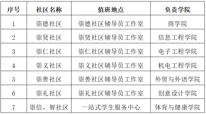 各社区辅导员工作室,具体安排如下: