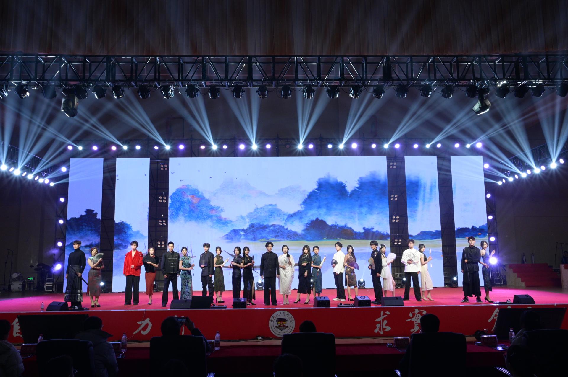 晚会在器乐《万疆》的激昂旋律中拉开序幕,古筝清韵与鼓乐雄浑交织,奏响青春乐章。舞蹈《醉春风》以优美舞姿演绎俏、羞、媚、喜,传递着生机活力。情景朗诵《四季更迭之年轻的朋友来相会》以四季节气为线索,深情讲述学校变迁。礼仪课的学生们身着华美服饰,精彩演绎《新中式走秀》,为观众带来了一场视觉与听觉的双重盛宴。小品《遇人不赎》情节跌宕,引人深思,让观众在欢笑中感悟人性。合唱《灯火里的中国》将晚会推向高潮,同学们用歌声描绘灯火阑珊下的幸福中国,展现时代风貌,绽放梦想与才华。
