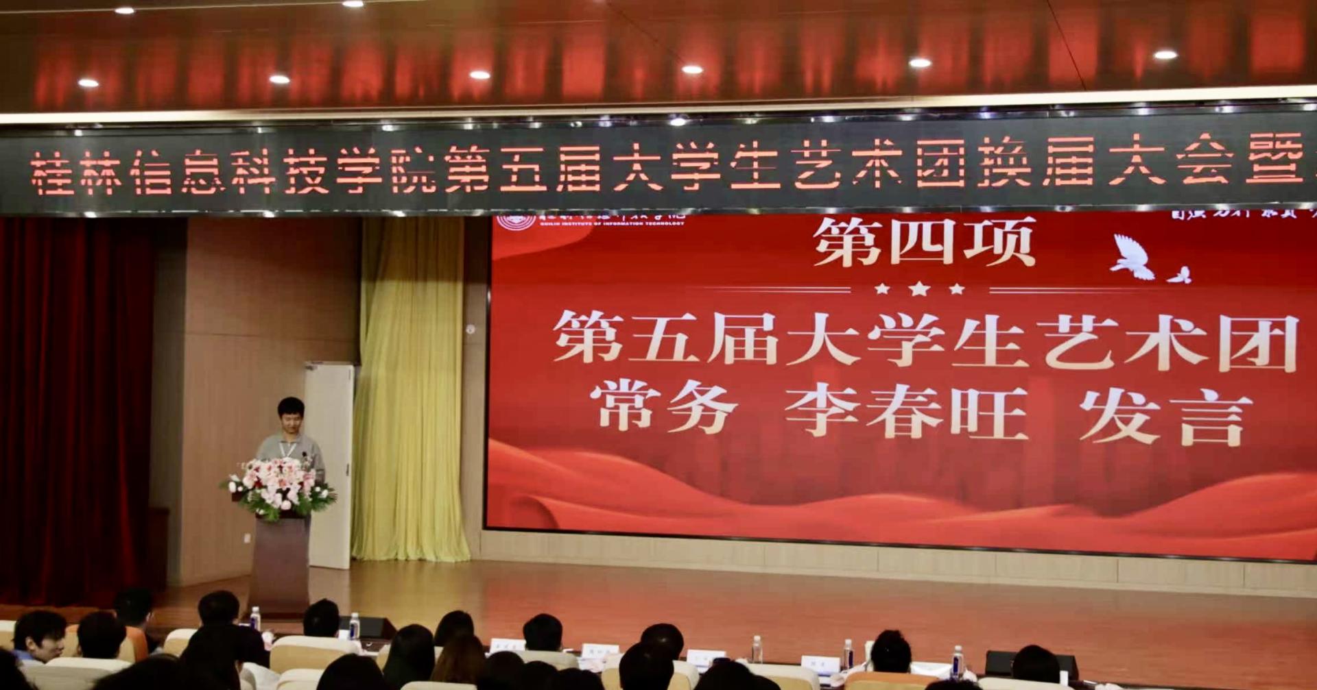 第五届大学生艺术团常务李春旺同学与第四届代表余婷同学先后登台发言。李春旺同学承诺将认真履行职责,带领新成员们不断进取,为艺术团的发展贡献自己的力量。余婷同学则深情回顾了在艺术团的成长历程,将艺术传承的责任郑重地传递给新一届成员,彰显了艺术团一脉相承的精神内核。