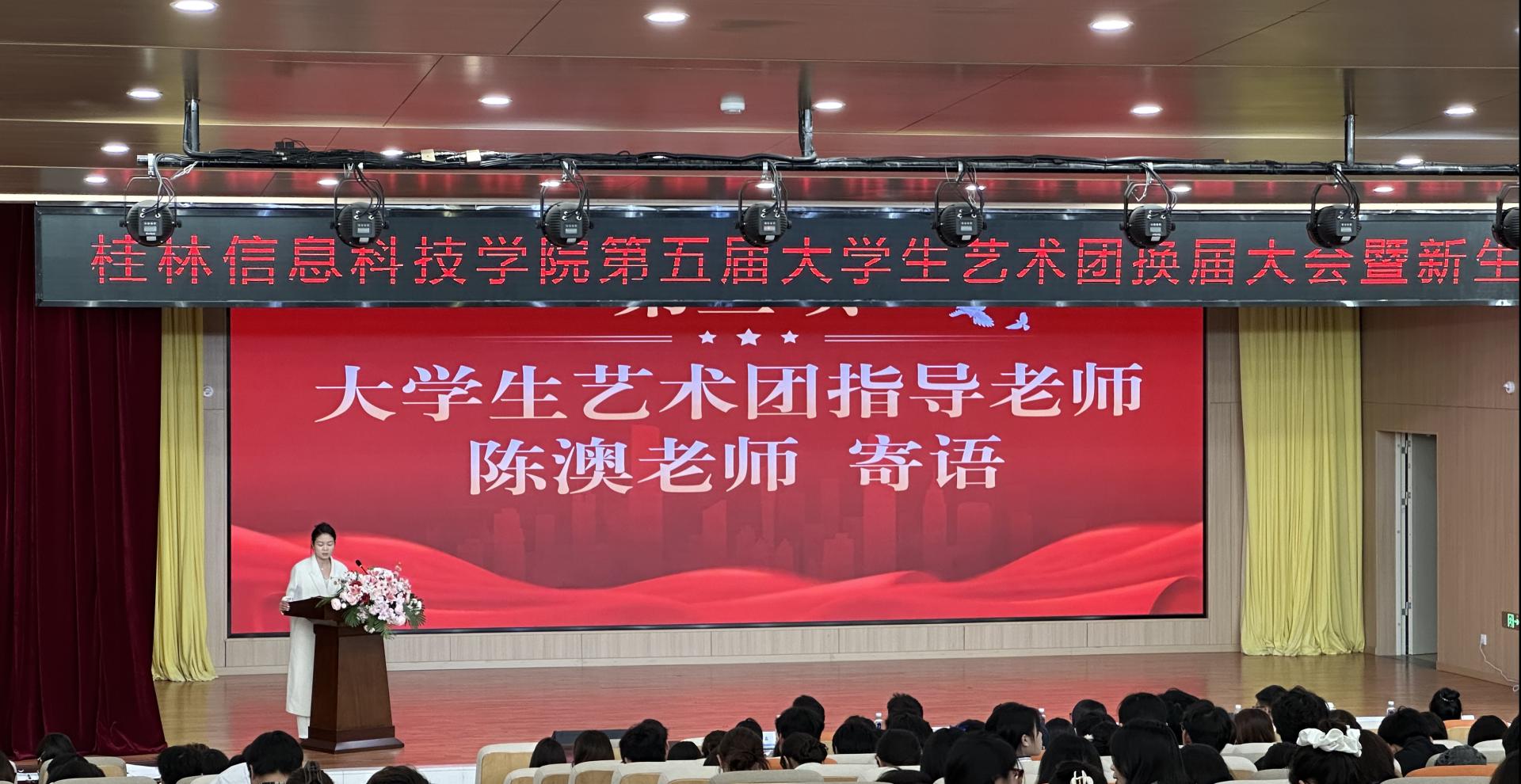 大会开始,舞蹈部开场舞《special vibe》率先点燃现场氛围。会上,大学生艺术团指导教师陈澳老师寄语,饱含对艺术团发展的期许与对新成员的鼓励,更对新成员们寄予了厚望,激励着大家在艺术的道路上不断探索、砥砺前行。