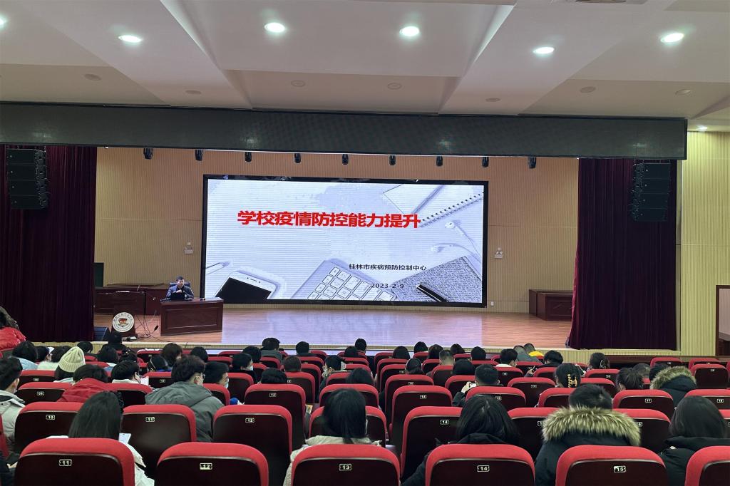 【返校动态】学校开展疫情防控能力提升及应急救护专题培训为提高新型冠状病毒感染“乙类乙管”形势下学校应对疫情处置能力,为春季学期学生返校疫情防控工作做好充分准备,确保学生身体健康和校园安全稳定。2月9日下午,学校学生工作处、保卫处邀请桂林市疾控中心流行病...