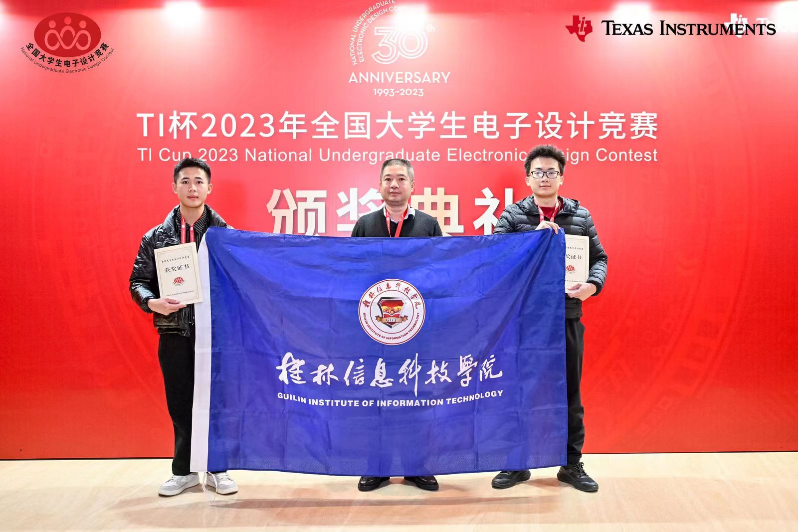 【喜讯】beat365官网师生参加2023年全国大学生电子设计竞赛颁奖典礼暨30周年庆...11月19日,2023年度TI杯全国大学生电子设计竞赛颁奖典礼暨全国大学生电子设计竞赛30周年庆典在北京隆重举行,全国优秀参赛队伍代表受邀前往北京接受表彰。beat365官网电子工程学院获奖指导教师代表韩桂明和学生代表秦发...