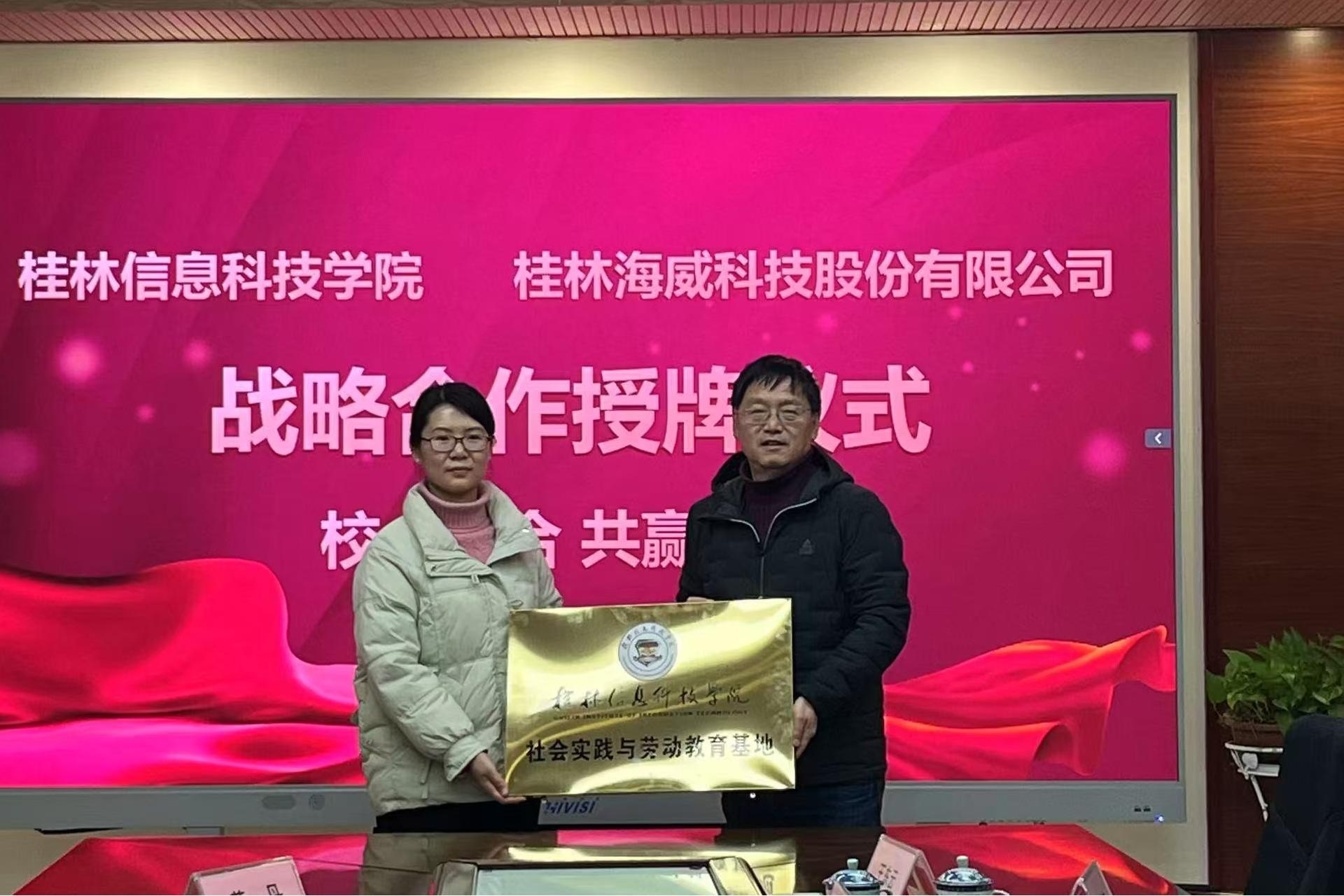 beat365官网与桂林海威科技股份有限公司签订战略合作协议为推动产教深度融合、助力校企紧密合作,beat365官网与桂林海威科技股份有限公司于2月13日正式签订了战略合作协议,并举行了“校企协同育人基地”与“社会实践与劳动教育基地”授牌仪式。桂林海威科技股份有限公司副总...