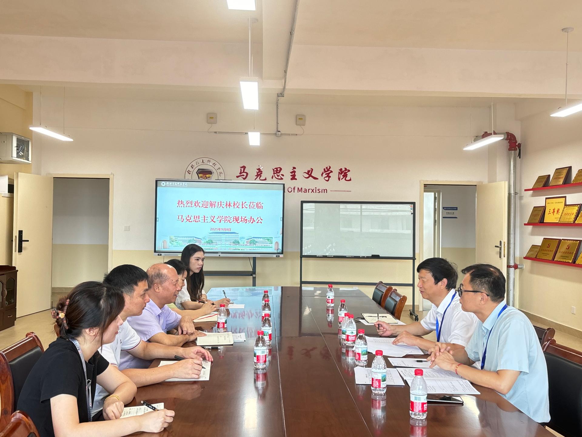 校长解庆林到马克思主义学院召开现场办公会为保障新学期教学秩序平稳有序,扎实做好本科教学工作合格评估迎评准备,9月8日上午,解庆林校长带领相关职能部门赴马克思主义学院召开现场办公会,深入调研学院发展情况,协调解决实际问题。现场办公会解校长在...