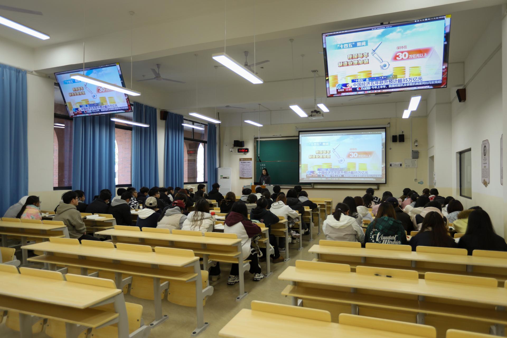 校领导为学生讲授思政课近日,学校副校长李桂华、陈玲萍、刘跃峰以及学校纪委书记、校长助理周璇先后走进思政课堂,为各学院学生讲授思政课。学校副校长李桂华以“决胜‘十四五’,奋发向前行”为主题,为商学院大一学生系统梳理了“十...