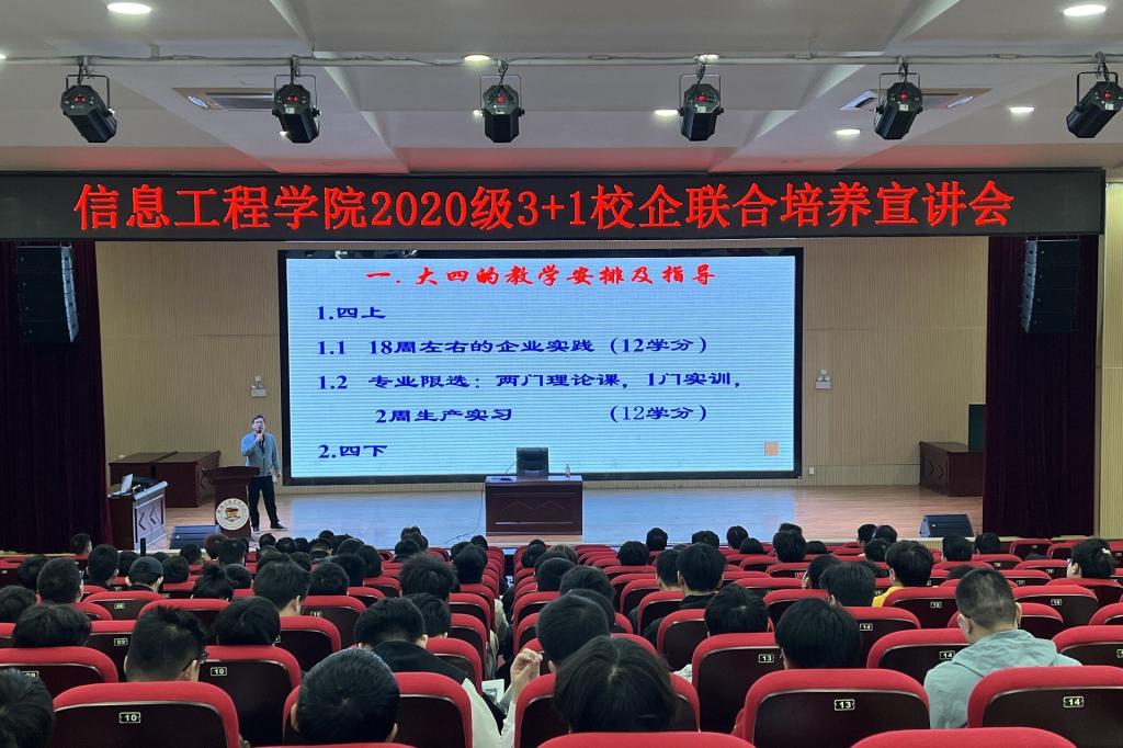 信息工程学院召开2020级校企联合培养动员大会近日,信息工程学院在51206报告厅召开了2020级校企联合培养动员大会。本次会议由我院2020级辅导员陆鑫组织,学院院长黄建灯主讲,党总支书记郭健和各教研室教师代表出席会议。会上,黄院长就此次校企联合培养的实...