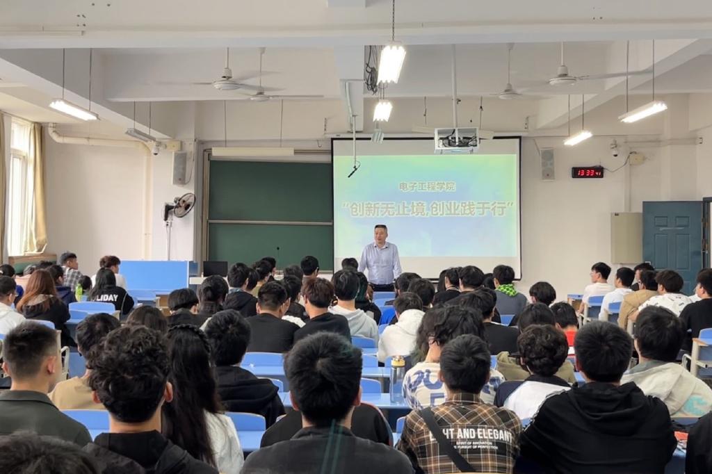 电子工程学院开展“创新无止境,创业践于行”主题教育讲座4月12日中午,电子工程学院在32307教室开展“创新无止境,创业践于行”主题教育讲座。本次讲座由学院院长韩桂明担任主讲人,各年级共计180名同学参与本次讲座。讲座中,韩院长从创新思维、创业思维的培养和创业...