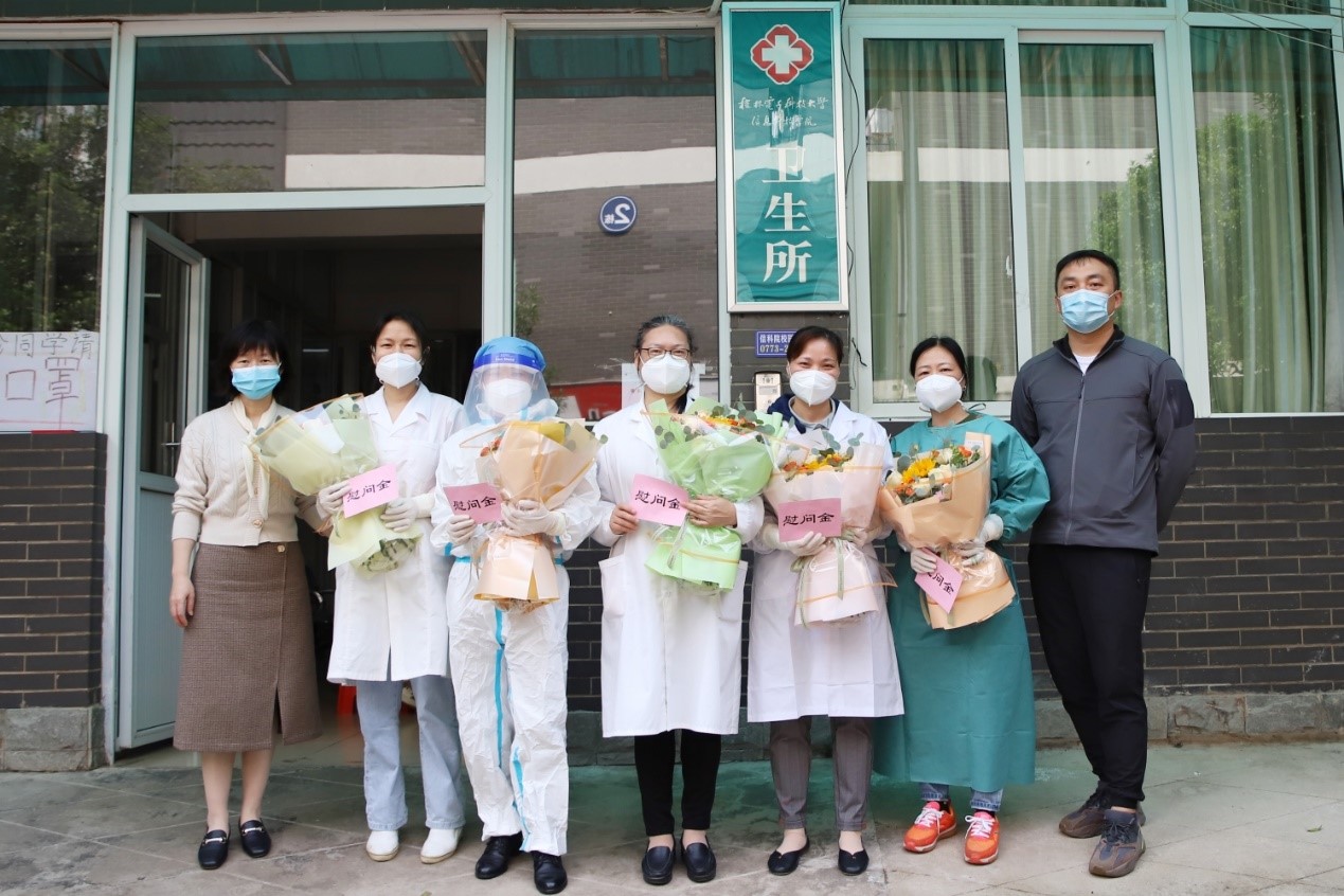 致敬医护,礼赞天使——学校工会慰问一线医护工作者5月12日,在第112个国际护士节到来之际,学校校工会常务副主席申琍,保卫处处长彭鹏以及相关部门老师到学校卫生所看望一线医护工作者,并向她们致以节日祝福和诚挚慰问。申琍为医护人员献上鲜花申琍向全体医护人...