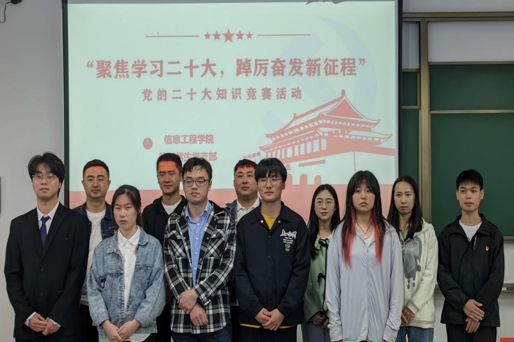 信息工程学院第二学生党支部“聚焦学习二十大,踔厉奋发新征程”知识竞...为进一步坚定党员的理想信念,提高党员的学习意识和党性修养,丰富学习形式,5月11日中午,信息工程学院第二学生党支部在31211教室举行“聚焦学习二十大,踔厉奋发新征程”党的二十大知识竞赛决赛。出席本次活动...