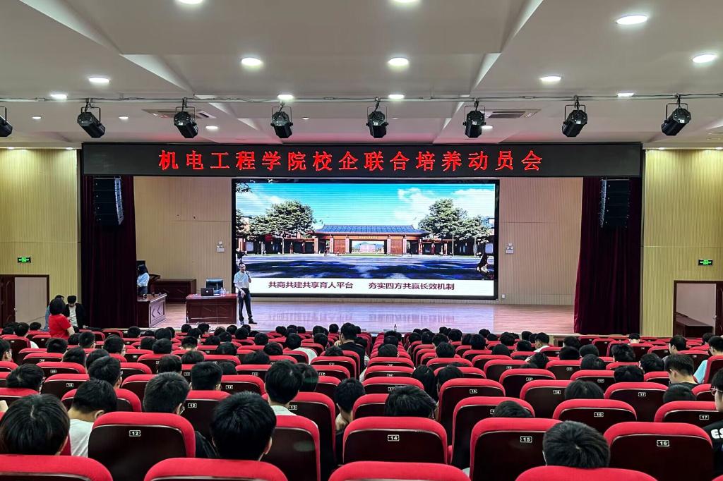 机电工程学院召开校企联合培养动员会为加强校企合作,积极推进应用型人才培养,5月5日,机电工程学院在51206报告厅举行了“以学生为中心,校企生同向奔赴高质量发展”为主题的2020级校企联合培养动员会。由学院院长刘跃峰主讲,党总支书记黄娟、院长...