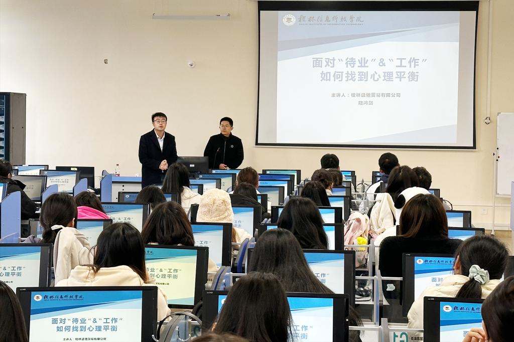 【我为师生办实事】外贸与外语学院开展以面对“待业”和“工作”如何找...为了帮助我院2024届毕业生适应当前紧张的就业形势,减轻就业方面的心理压力,12月5日,外贸与外语学院开展了一场主题为“面对‘待业’和‘工作’如何找到心理平衡”的就业心理辅导专题讲座。讲座邀请桂林盛驰贸易...