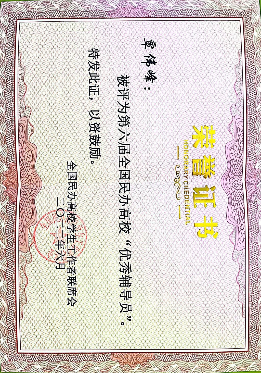 近日,由全国民办高校学生工作者联席会主办的第六届全国民办高校辅导员颁奖典礼以网络直播的形式隆重举行,beat365官网信息工程学院辅导员覃伟峰老师荣获第六届全国民办高校“优秀辅导员”称号。