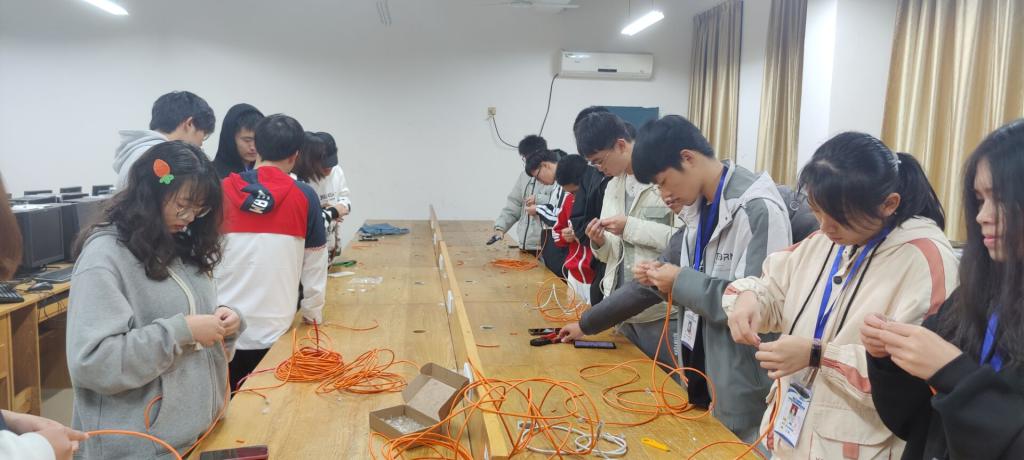11月23日,信息工程学院在31401教室举办网线制作活动。本次活动由大学生科技创新创业协会成员和基地负责人做指导教学,我院21级学生积极参加。